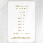 - 12月の営業日と季節のお便り12月の営業日と季節のお便り いつも CHAP-PIE をご愛顧いただき誠にありがとうございます。皆さまのおか… 続きを読む: 12月の営業日と季節のお便り