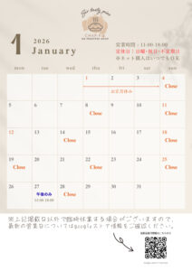 2026年2月 営業日のお知らせ ご案内が少し遅くなりましたが、2月も通常通り営業いたします。 寒さがいちだんと深まる季節ですが、そんな時こそ、ほっと心と体が温まるミートパイを🥧今月も一つひとつ心を込めて […]