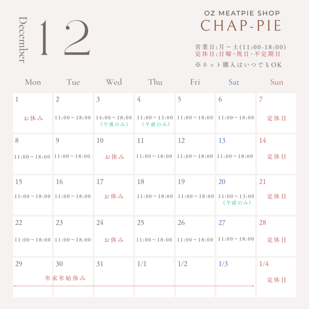 12月もCHAP-PIEをどうぞよろしくお願いいたします。
